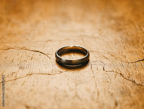 Engagement ring reflection rustic wood background close-up romantic jewelry