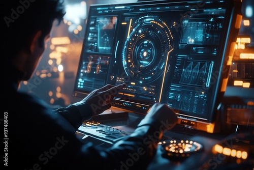 Engaging with a High-Tech Interface: A Glimpse into Precision and Futuristic Technology