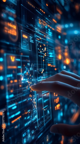 Engaging with advanced data visualization on a touchscreen display in a modern tech environment