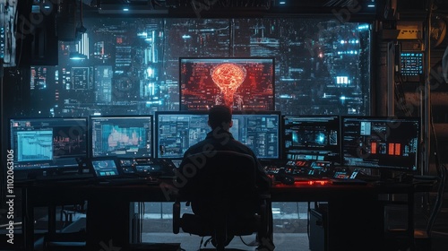 Engineer operator using AI system, back view