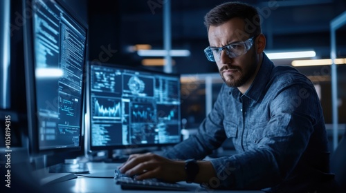 Engineer testing a prototype in a high-tech laboratory,