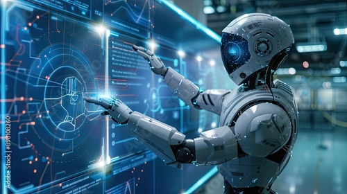 Engineer using AI-powered tools to streamline industrial processes, emphasizing the efficiency and innovation brought by artificial intelligence with this inviting photo.