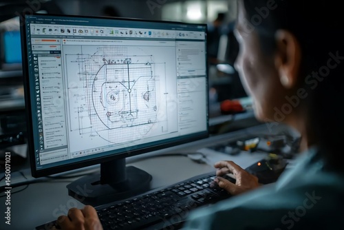 Engineer Working on Computer-Generated Design in Modern Office