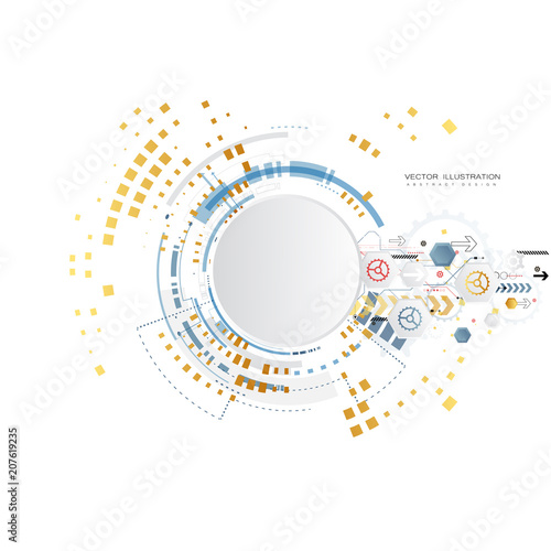 Engineering technology various multicolour elements witn geometric shape, digital space for content, network, business tech presentation on light background, futuristic interface. vector ilustration