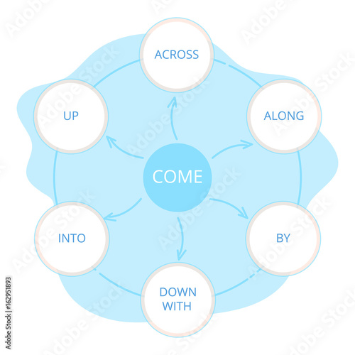 English grammar. Phrasal verbs. "Come" verb. .Diagram.