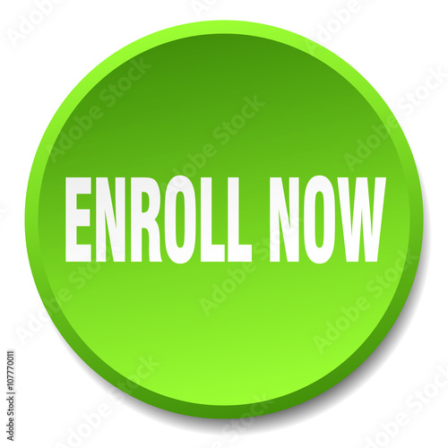 enroll now green round flat isolated push button