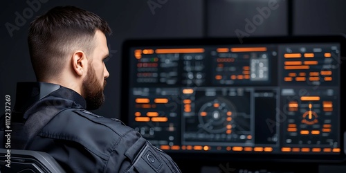 Enterprise AI Optimization concept. A focused individual monitors complex digital data on a high-tech screen, showcasing a modern, tech-driven environment.