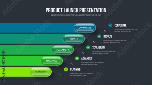 Enterprise Overview 5 Step Infographic Slide Layout. Creative Solution Five Element Diagram Frame Template. Business Performance Presentation Design Vector Illustration.