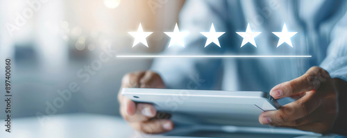 Entrepreneur reviewing customer feedback on a tablet, ecommerce, client satisfaction