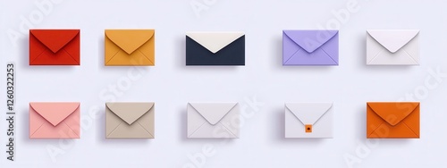 Envelope designs showcasing various flap styles, clean white backdrop, ideal for stationery and design inspiration