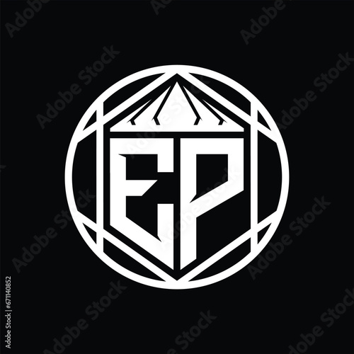 EP Letter Logo monogram hexagon slice crown sharp shield shape isolated circle abstract style design