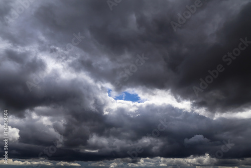 Epic Dramatic storm dark grey cumulus rain clouds background texture, thunderstorm