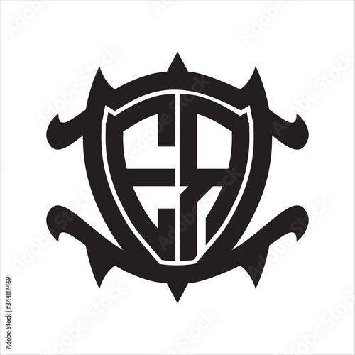 ER Logo monogram isolated with frame shield shape design template
