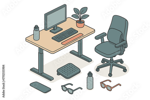 Ergonomic home setup featuring adjustable standing desk and computer equipment