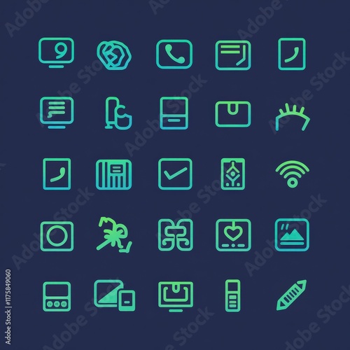 Essential Communication and Technology Icons: A Modern Gradient Line Set