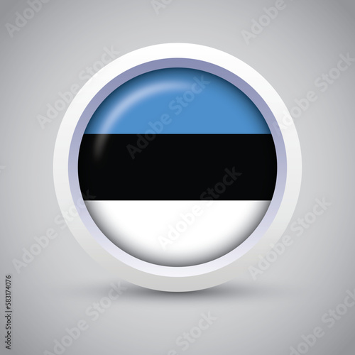 Estonia Flag Glossy Button on Gray Background. Vector Round Flat Icon
