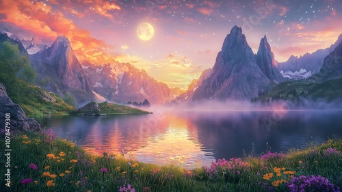 Ethereal Dawn Over Misty Mountains