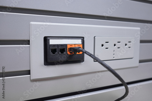 Ethernet cable plugged into wall socket