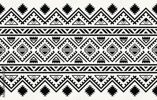 Ethnic tribal black and white background. Seamless tribal stripe pattern, folk embroidery, tradition geometric ornament. Traditional design for fabric, textile, print, rug, paper