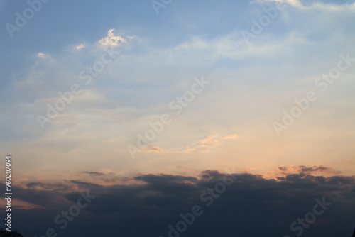 Evening sky has dark clouds and sunlight.