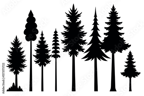 Evergreen Pine Tree Silhouettes – Black Vector Forest Trees Collection Isolated on White Background