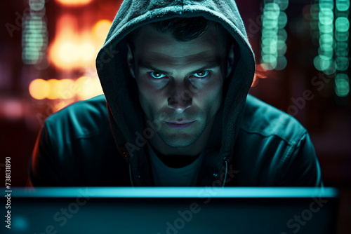 Experienced hacker in action breaking software protection server code Generative Ai image pic