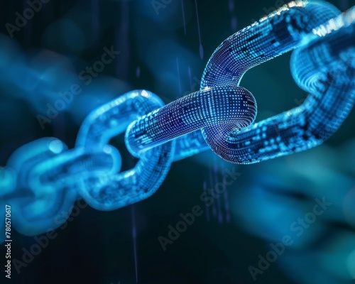 Exploration of blockchain technology through imagery: digital chains, cryptography, and the revolution in fintech.