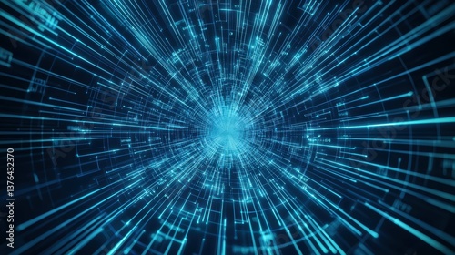 Exploring digital energy quantum data flow virtual space abstract visualization high-tech environment dynamic perspective