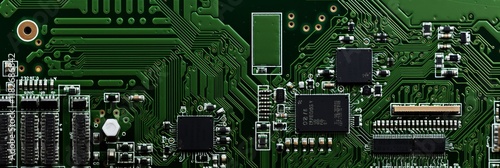 Exploring the intricate details of a circuit board in a tech workshop. Generative AI