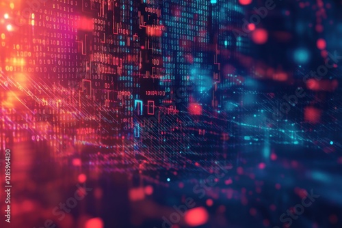 Exploring the vibrant world of digital data and technology at dusk with cascading binary code. Generative AI