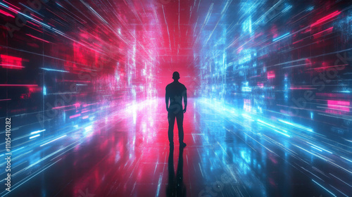 Exploring virtual reality and big data: software engineer silhouette entering cyberspace