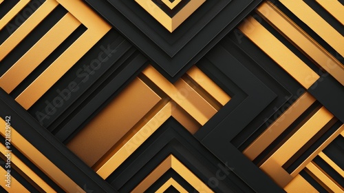 Exquisite art deco geometric design in gold and black, highlighting interlocking patterns and elegant symmetry, reminiscent of 1920s architecture