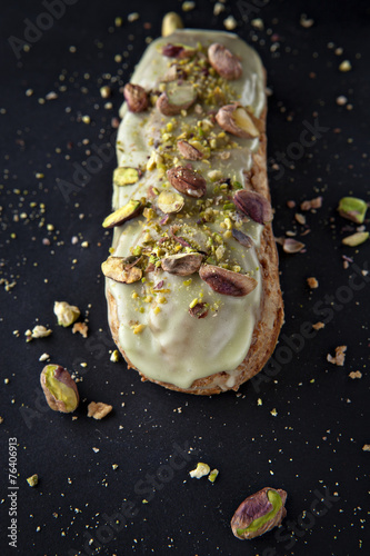 eclair, cake, decorating, cream, appetising, baking, pie, dessert, sweet, sugar, chocolate, gentle, food, pastry, catering, eat, snack, berry, tasty, tartlet, delicious, fat, portion, fondant, fresh, custard, ingredient, glaze, puff, whipped, butter, pistachio, nut