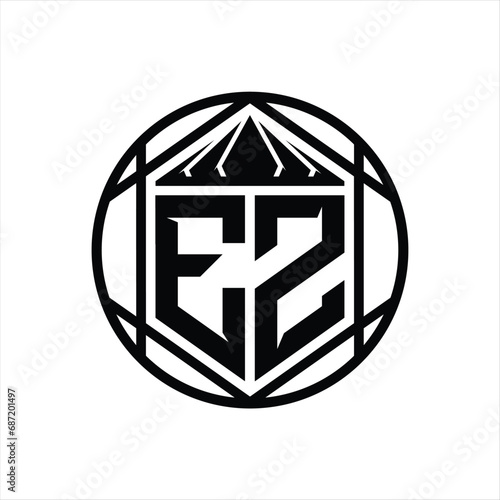 EZ Letter Logo monogram hexagon slice crown sharp shield shape isolated circle abstract style design