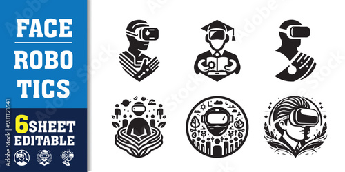 Face robotics Artificial intelligence icon collection. machine learning, data science, AI, virtual assistant, generative AI, technology. Line vector icons set.