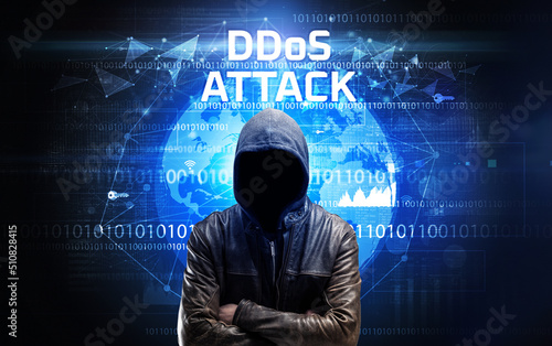 Faceless hacker at work, security concept