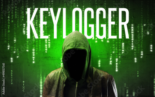 Faceless hacker with inscription concept