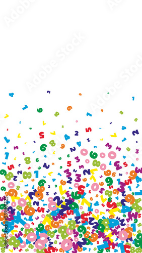 Falling bright numbers. Math study concept with flying digits. Cute back to school mathematics banner on white background. Falling numbers vector illustration.