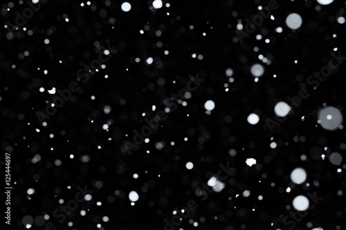 Falling snow on black background.