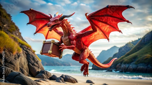 Fantasy Dragon with Treasure on the Beach