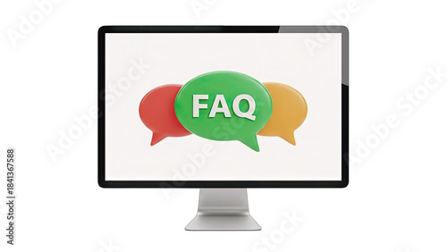 FAQ on Computer Screen with Speech Bubbles