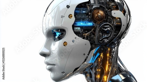 Fascinating cyborg head showcasing advanced artificial intelligence.