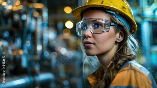 Female engineer operating advanced machinery in an oil processing unit