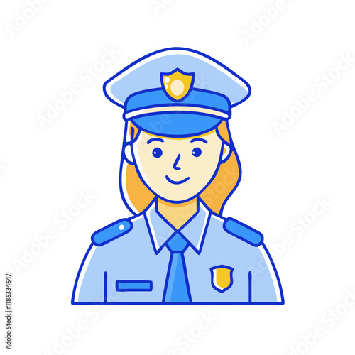 female police officer vector icon, women’s day vector illustration - simple illustration of female police officer perfect for logos, and holidays -themed designs.