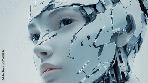 Female robot face, Artificial intelligence concept. Generative AI