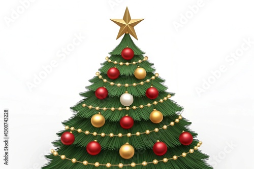 festive digital illustration of decorated Christmas tree with ornaments and lights for holiday visuals