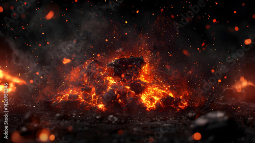 Fiery Embers And Sparks In Dark Background
