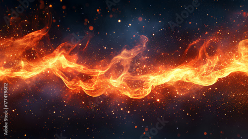 Fiery Energy Stream Across Space Backdrop Radiating Intense Heat Sparkling Particles and Burning Embers