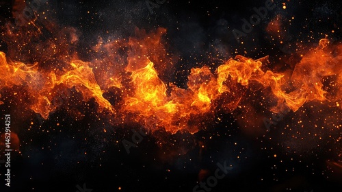 Fiery Inferno Abstract Flame Stream on Black Background.