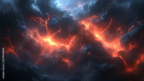 Fiery Lightning Cracks Through Dark Storm Clouds
